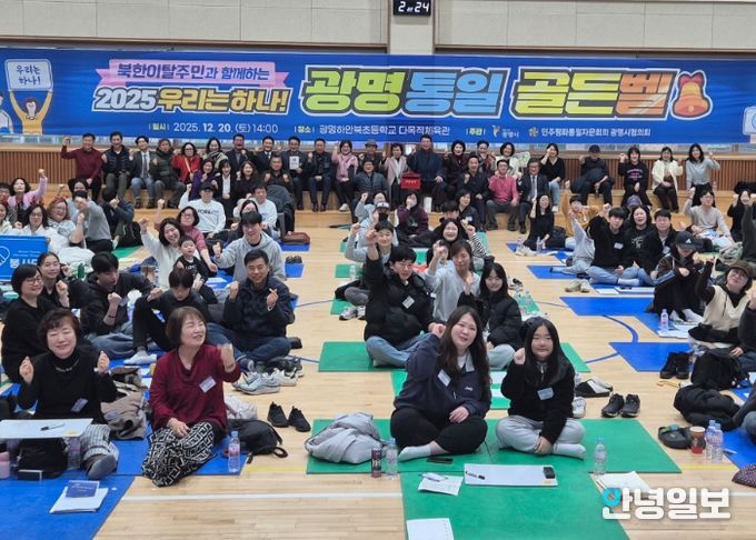 안녕일보 배윤 기자 | 민주평화통일자문회의 광명시협의회는 지난 20일 광명하안북초등학교 다목적체육관에서 ‘2025. 우리는 하나!’를 슬로건으로 시민과 자문위원이 함께하는 ‘광명 통일골든벨’ 행사를 성황리에 개최했다.