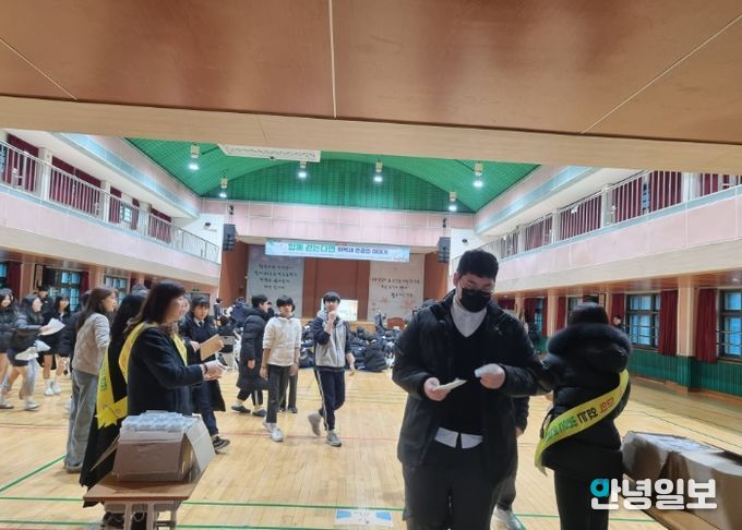 안녕일보 배윤 기자 | 경기도연천교육지원청은 12월 19일, 전곡중학교에서 학생 약 550명을 대상으로 교육환경보호구역 제도 및 마약 예방 홍보 캠페인을 실시했다.