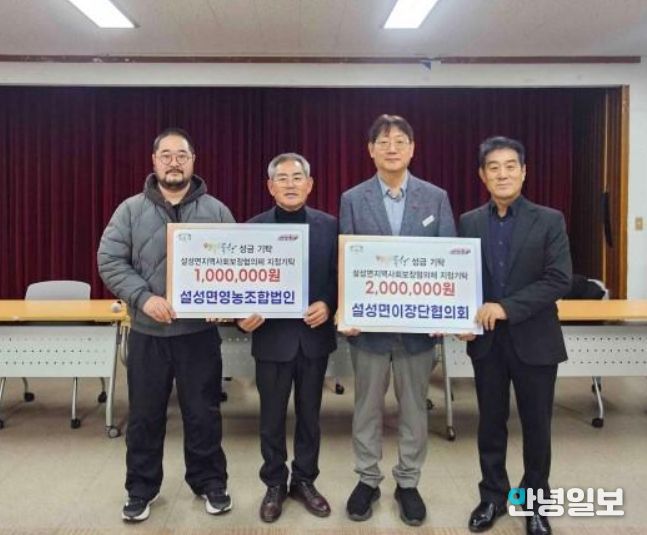 이번 성금 기탁은 설성면 이장단협의회가 200만 원, 설성영농조합법인이 100만 원을 각각 마련해 총 300만 원이 조성됐으며, 기탁된 성금은 관내 홀몸어르신과 도움이 필요한 이웃들을 위해 사용될 예정이다.