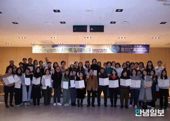 안녕일보 배윤 기자 | 남양주시는 22일 금곡양정행정복지센터 6층 다목적공연장에서 기후위기 대응과 지역사회 환경교육의 핵심 역할을 수행할 ‘2025년 시민환경해설사 양성과정’ 수료식을 개최했다.