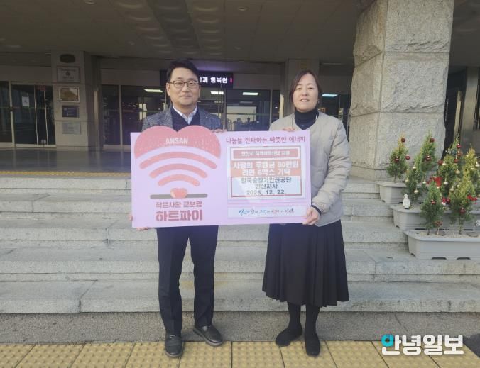 안녕일보 배윤 기자 | 안산시는 지난 22일 한국승강기안전공단 안산지사로부터 사랑의 후원금 80만 원과 라면 6박스를 기탁받았다고 23일 밝혔다.