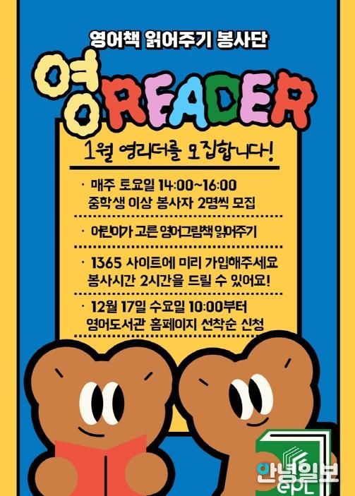 안녕일보 배윤 기자 | 의정부영어도서관은 2026년 1월부터 영어책 읽어주기 봉사단 ‘영리더’가 참여하는 재능기부 프로그램 ‘Please Read a Book’을 운영한다.