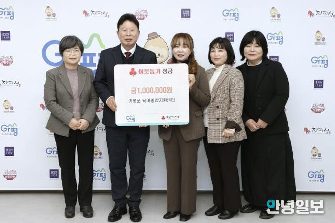 안녕일보 배윤 기자 | 가평군육아종합지원센터는 최근 연말을 맞아 어려운 이웃을 돕기 위해 성금 100만원을 가평군에 기탁했다.