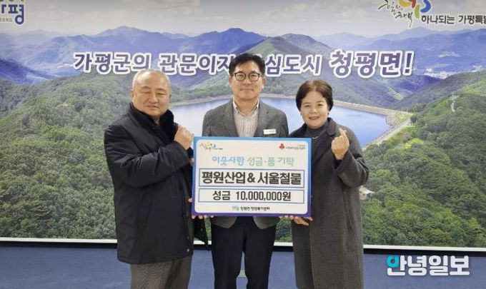 이에, 박성규 청평면장은 “큰 금액의 성금을 기탁해 주신 평원산업과 서울철물에 깊은 감사의 말씀을 드린다”며 “전해주신 성금은 도움이 꼭 필요한 이웃들에게 소중하게 전달하겠다”고 밝혔다.