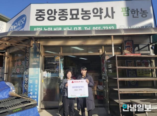 안녕일보 배윤 기자 | 동두천시 중앙종묘농약사는 지난 22일 연말을 맞아 생연2동 행정복지센터에 어려운 이웃을 돕기 위한 성금 100만 원을 기탁했다.