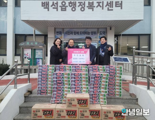 이번 기부는 생활 여건이 어려운 취약계층이 겨울철을 보다 따뜻하게 보낼 수 있도록 돕기 위한 나눔 실천의 일환으로 마련됐다. 전달된 컵라면은 백석읍행정복지센터를 통해 도움이 필요한 가구에 순차적으로 배부될 예정이다.