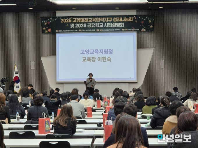 안녕일보 배윤 기자 | 경기도고양교육지원청은 2025년 12월 23일 킨텍스 제2전시장(401~403호)에서‘2025 고양미래교육협력지구 성과나눔회 및 2026 공유학교 사업설명회’를 개최했다. 이날 행사에는 고양 관내 유·초·중·고 교사, 학교관리자, 학생, 협력 마을활동가 등 총 400여 명이 참석해 고양교육의 미래를 함께 모색했다.