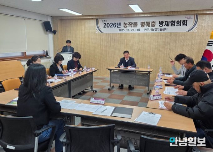 안녕일보 배윤 기자 | 광주시농업기술센터는 23일 행정기관, 농협, 농업인 단체 대표 등 관계자 11명이 참석한 가운데 농작물 병해충 방제협의회를 개최했다.