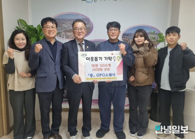 안녕일보 배윤 기자 | OPO스쿼시 강인석 대표는 23일 어려운 이웃에게 전달해 달라며 광주시 오포1동에 라면 500개(50만 원 상당)를 기탁했다.