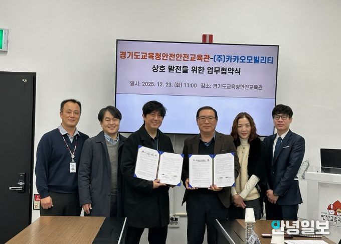 안녕일보 배윤 기자 | 경기도교육청안전교육관이 23일 ㈜카카오모빌리티(CEO 류긍선)와 교통안전 및 학생안전 교육 분야 발전을 위해 업무협약(MOU)을 체결했다.
