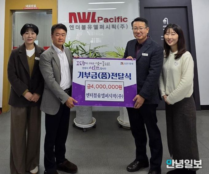 이번에 전달된 기부금은 서운면 관내 저소득층 및 복지사각지대에 놓인 이웃들을 위해 사용될 예정으로, 연말을 맞아 지역사회와 상생하고 나눔을 실천하고자 하는 엔더블유엘퍼시픽(주)의 뜻이 담겼다.