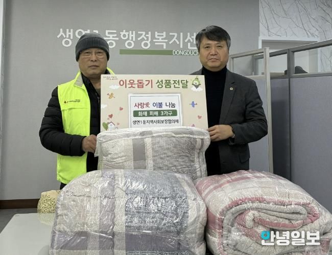 안녕일보 배윤 기자 | 생연1동 지역사회보장협의체는 지난 22일 주택 화재로 피해를 입은 관내 가구를 방문해 이불을 전달했다고 밝혔다.