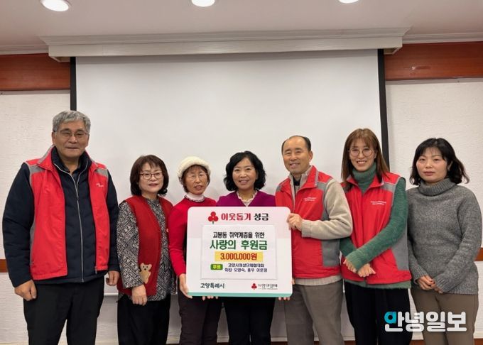 차형수 고봉동장은 “어려운 시기에 따뜻한 나눔을 실천해 주셔서 더욱 뜻깊다”며 “전해주신 성금은 도움이 절실한 주민들을 위해 소중히 사용하겠다”고 전했다.