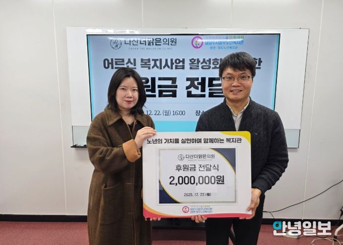 정영민 관장은 “지역 의료기관에서 보내주신 따뜻한 관심과 나눔에 깊이 감사드린다”며 “후원금은 어르신들의 삶의 질 향상을 위해 소중히 사용하겠다”고 밝혔다.