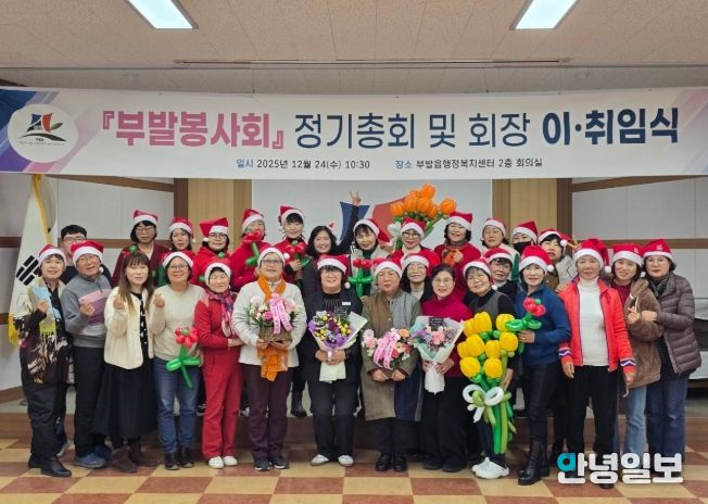 안녕일보 배윤 기자 | 이천시 부발읍 부발봉사회는 12월 24일 부발읍 행정복지센터 2층 회의실에서 정기총회 및 회장 이·취임식을 개최했다고 밝혔다. 이날 행사에는 황규현 회장을 비롯한 부발봉사회 회원 27명이 참석한 가운데, 이·취임사와 축사 등 순으로 진행됐다.