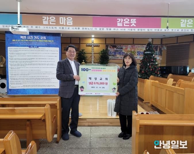 안녕일보 배윤 기자 | 의정부시 자금동주민센터는 12월 24일 계성교회가 어려운 이웃을 위한 성금 67만6천 원을 기탁하며 ‘100일간 사랑릴레이 배턴 잇기’에 동참했다고 밝혔다.