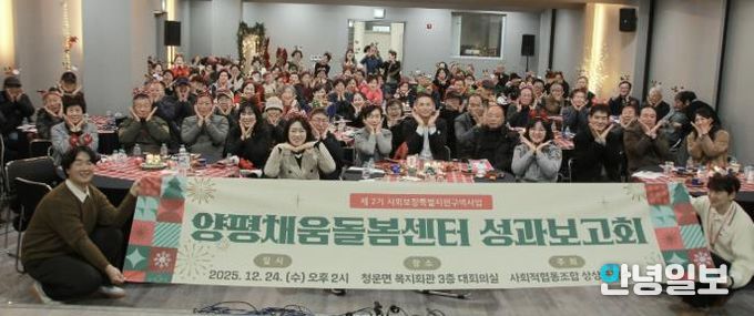 안녕일보 배윤 기자 | 양평군은 지난 24일 청운면 다목적복지회관에서 보건복지부 공모사업으로 추진 중인 ‘사회보장 특별지원구역 사업’ 성과 공유회를 개최했다고 밝혔다.