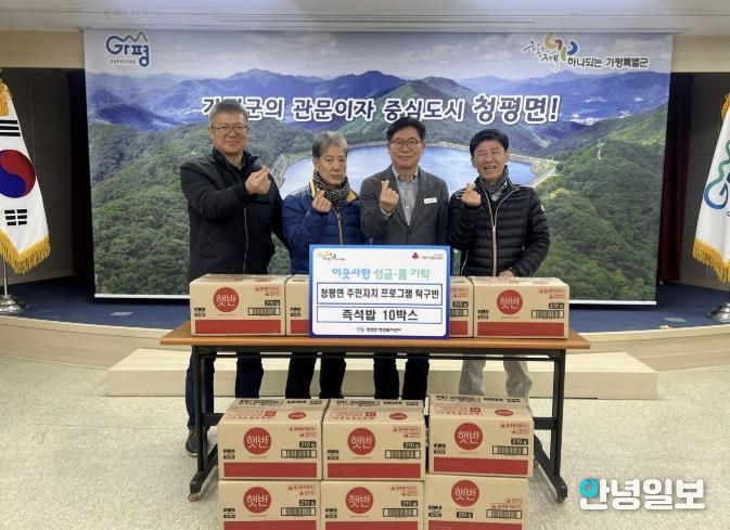 안녕일보 배윤 기자 | 가평군 청평면 주민자치 프로그램 탁구반 회원들은 최근 청평면 행정복지센터를 방문해 소외된 이웃들이 따뜻한 겨울을 보내길 바라는 마음으로 즉석밥 10박스를 기탁했다.