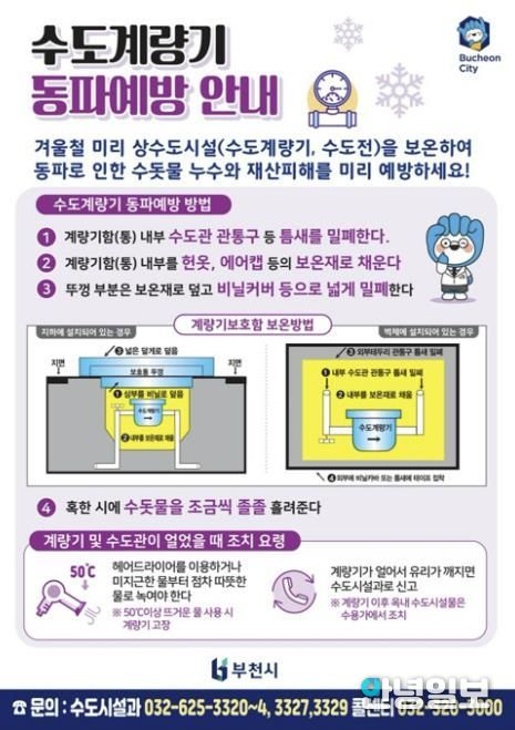 김상수 부천시 재난안전과장은 “올겨울 들어 가장 강한 한파가 예보된 만큼, 취약계층 보호와 수도관 동파 예방 등 시민 생활과 직결된 분야에 대응 역량을 집중하고 있다”며 “시민 여러분도 한파 행동 요령과 동파 예방 수칙을 꼭 실천해 주시길 바란다”고 말했다.