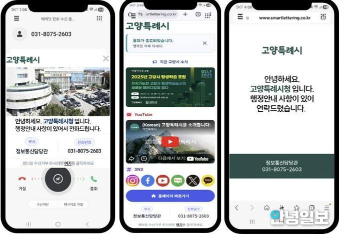 안녕일보 배윤 기자 | 고양특례시는 ‘거점형 스마트 조성 사업’의 일환으로 행정전화에 대한 시민 신뢰도를 높이고 민원 응대 효율을 개선하기 위해 ‘스마트 레터링 서비스'를 구축했다고 26일 밝혔다.