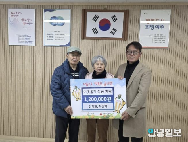 안녕일보 배윤 기자 | 금사면 생활개선회 최종희 회장이 배우자와 함께 지난 24일 여주시 금사면행정복지센터를 방문하여 이웃돕기 성금 120만원을 기탁했다.