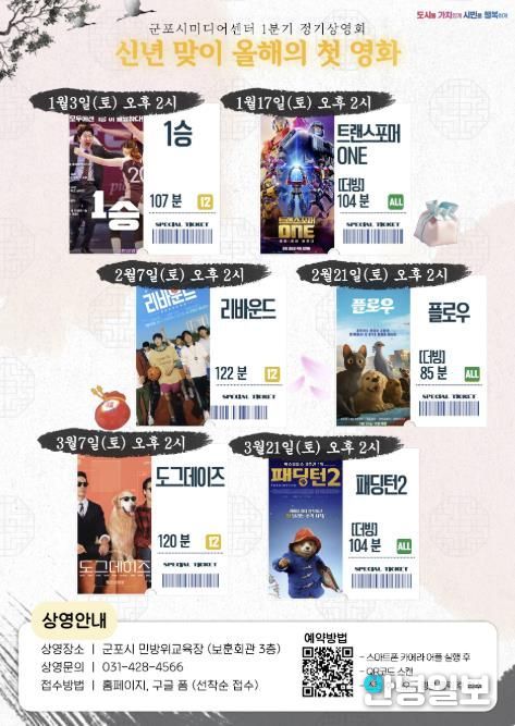 군포시미디어센터는 “정기상영회는 시민들이 일상 속에서 미디어 문화를 쉽고 편안하게 즐길 수 있도록 마련한 프로그램”이라며, “앞으로도 다양한 장르의 영화를 통해 시민들과 소통하는 문화 공간으로 운영해 나가겠다”고 밝혔다.