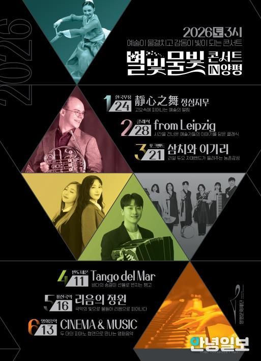 안녕일보 배윤 기자 | 양평문화재단은 군민들에게 깊은 감동과 예술적 즐거움을 선사할 생활문화센터 정기공연 ‘2026 별빛물빛 콘서트 in 양평’의 상반기 라인업을 확정했다. 이에 따라 내년도 첫 공연을 1월 24일에 올린다.