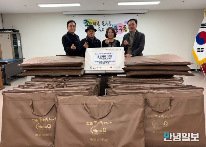안녕일보 배윤 기자 | 구리시 동구동 행정복지센터는 지난 26일 동구동 행정복지센터에서 구리경찰서 경찰발전협의회와 한일의료기로부터 관내 다문화가족과 취약계층을 위한 온열매트 30개(약 600만 원 상당)를 전달받았다고 밝혔다.