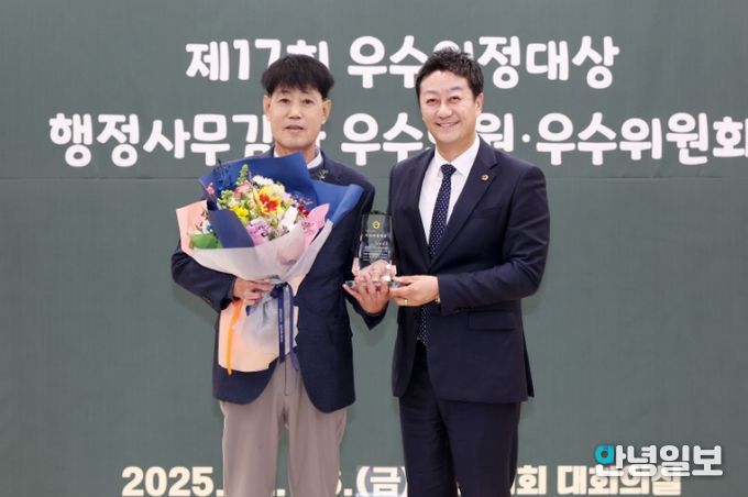 안녕일보 배윤 기자 | 경기도의회 건설교통위원회 양운석 의원(더불어민주당, 안성1)이 지난 26일 경기도의회 대회의실에서 개최된 대한민국시도의회 의장협의회 주관 ‘제17회 우수의정대상’ 시상식에서 우수의정대상을 수상했다. 이번 수상은 입법, 예산 심사, 행정 감시 등 지방의회의 핵심 기능을 균형 있게 수행하며 도민 삶의 질 개선에 기여한 점이 종합적으로 평가된 결과다.