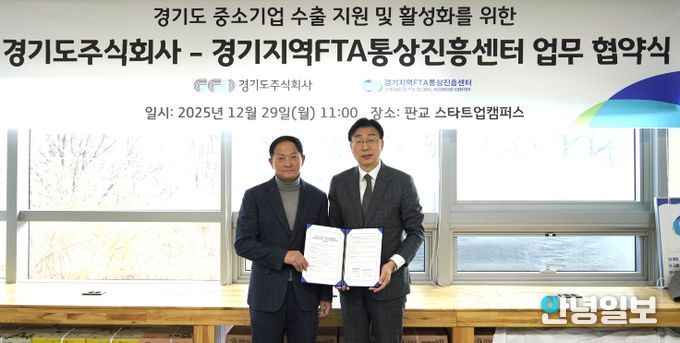 안녕일보 배윤 기자 | 경기도주식회사는 29일 경기도 성남시 경기스타트업캠퍼스에서 경기지역FTA통상진흥센터와 ‘경기도 중소기업 수출 지원 및 활성화를 위한 업무협약’을 체결했다.