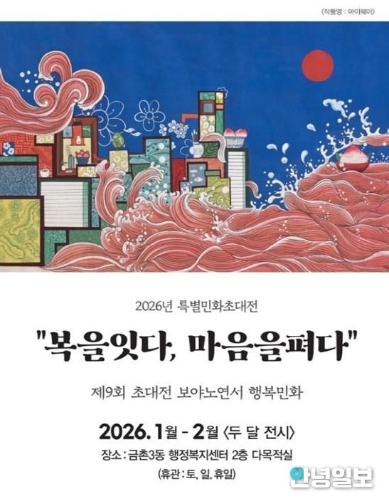 안녕일보 배윤 기자 | 파주시 금촌3동은 2026년 병오년 새해를 맞아 특별 민화 초대전 '2026 복을 잇다, 마음을 펴다'를 개최한다고 전했다.