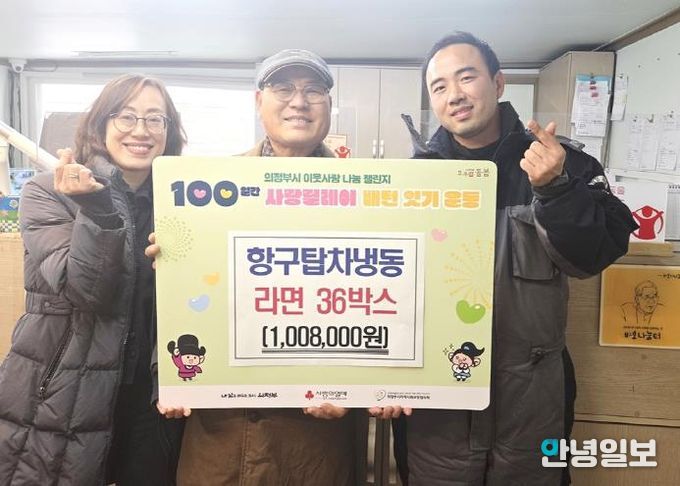 안녕일보 배윤 기자 | 의정부시 장암동주민센터는 12월 29일 항구탑차냉동이 라면 36상자(100만 원 상당)를 기부하며 ‘100일간 사랑릴레이 배턴 잇기’에 동참했다고 밝혔다.