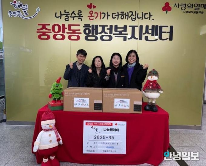 백경희 중앙동장은 “어르신들의 생활을 세심하게 살펴주신 진성교회의 따뜻한 나눔에 깊이 감사드린다”며 “이번 기탁은 새로운 공간에서 시작하는 경로당 어르신들께 큰 힘과 응원이 될 것”이라고 말했다.