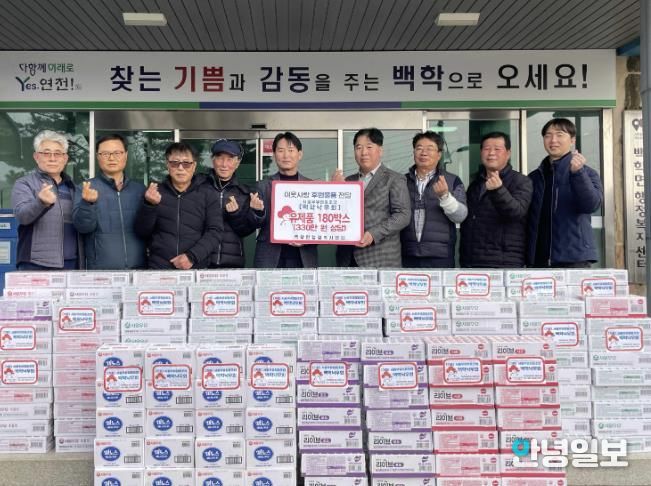 안녕일보 배윤 기자 | 서울우유협동조합 백학낙우회는 지난 29일 연말을 맞아 지역 내 어려운 이웃을 돕기 위해 백학면행정복지센터에 멸균우유 등 유제품 180박스(330만 원 상당)를 기탁했다.