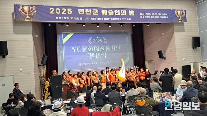 안녕일보 배윤 기자 | 지역 예술·문화 발전을 위해 한 해 동안 활동해 온 예술인들이 한자리에 모여 성과를 나누는 ‘2025 연천군 예술인의 밤’이 지난 26일 연천군종합복지관 대강당에서 열렸다.