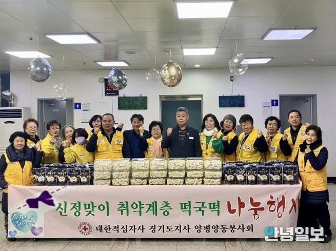 안녕일보 배윤 기자 | 대한적십자사 경기도지사 양평양동봉사회는 지난 29일 양동면 주민자치센터 1층 ‘휴담’에서 관내 취약계층을 위한 떡국 나눔 행사를 열고 연말 따뜻한 정을 전했다.