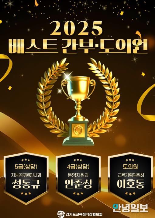안녕일보 배윤 기자 | 경기도교육청 직장협의회는 소통과 협력을 기반으로 한 조직문화 정착과 활기찬 직장 분위기 조성을 위해 '2025년 베스트 간부 및 경기도의원'을 선정했다고 12월 30일 밝혔다.