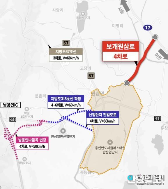 보개원삼로는 최근 개통한 세종포천고속도로의 남용인 나들목(IC)와 직접 연계되기 때문에 이번 확장이 용인 반도체클러스터 일반산단의 물류‧교통에도 긍정적인 영향을 미칠 것으로 전망하고 있다.