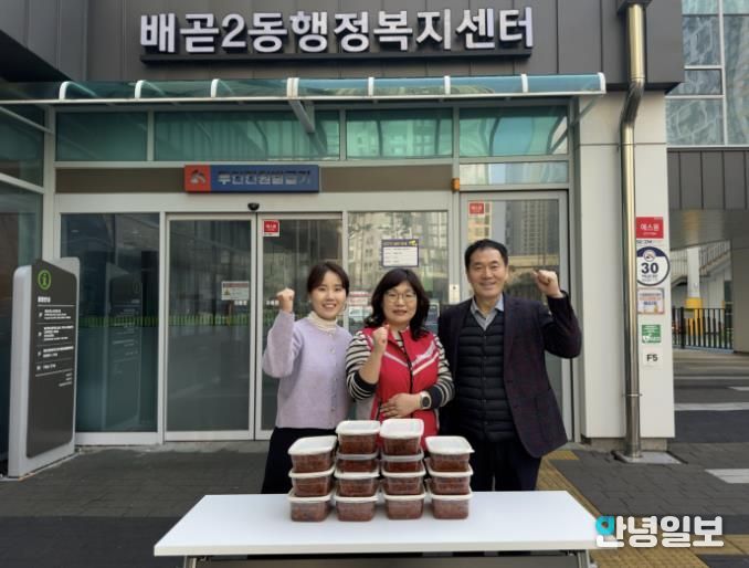 안녕일보 배윤 기자 | 시민봉사단체인 ‘넝쿨봉사단’은 지난 12월 29일, 연말을 맞아 배곧2동의 어려운 이웃을 위해 무장아찌 무침 14세트를 전달하며 따뜻한 나눔을 실천했다.