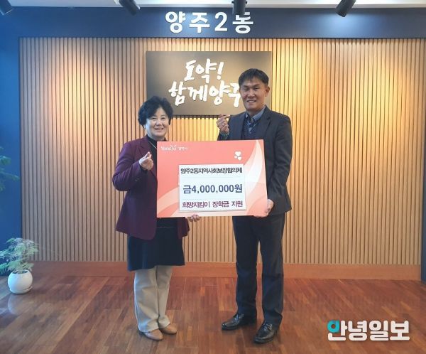 백기철 양주2동장은 “지역 학생들을 위해 따뜻한 나눔을 실천해 주신 양주2동 지역사회보장협의체에 깊이 감사드린다”며 “희망지킴이 장학금이 학생들에게 큰 응원과 용기가 되길 바란다”고 전했다.