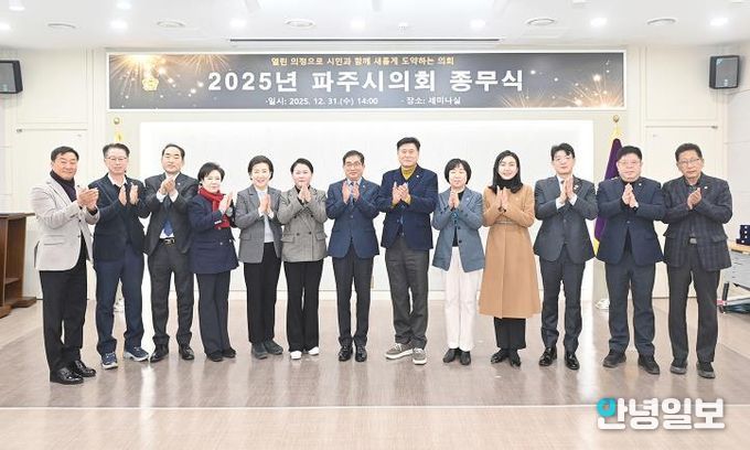 안녕일보 배윤 기자 | 파주시의회는 12월 31일 오후 2시, 파주시의회 1층 세미나실에서 2025년 종무식을 개최하면서 우수의원 표창에 대한 표창 전수식을 진행했다.