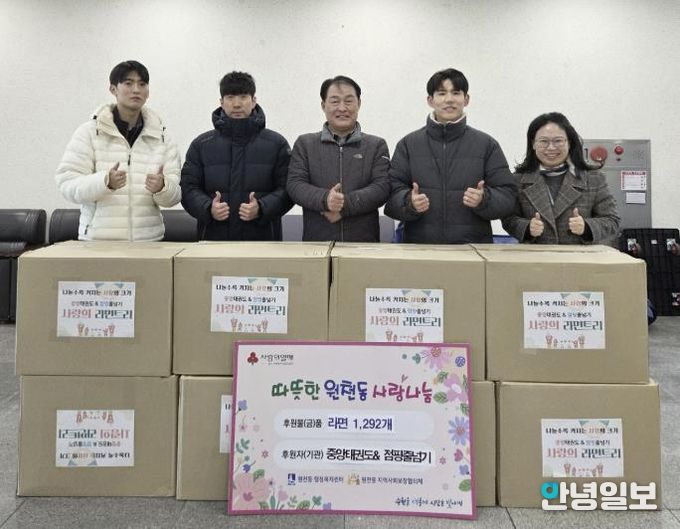 김선혁 동장은 “매년 잊지 않고 따뜻한 나눔을 실천해주시는 중앙태권도&점핑줄넘기에 감사드린다”며 “기부된 라면은 도움이 필요한 가정에 소중히 전달하겠다”고 전했다.