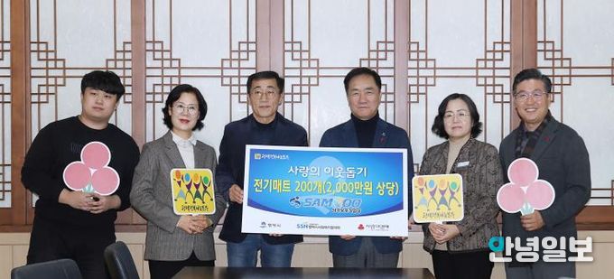 안녕일보 배윤 기자 | (사)함께하는세상 삼우보호작업장은 평택행복나눔본부에 전기매트 200개(2,000만원 상당)를 전달했다.