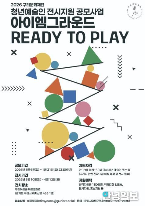 안녕일보 배윤 기자 | (재)구리문화재단은 청년 예술인의 도약과 성장을 지원하기 위한 청년 정책 플랫폼 사업의 일환으로, 2026년 청년 예술인 전시지원 공모사업 '아이엠 그라운드, Ready to Play'에 참여할 예술인을 1월 6일부터 1월 31일까지 모집한다.