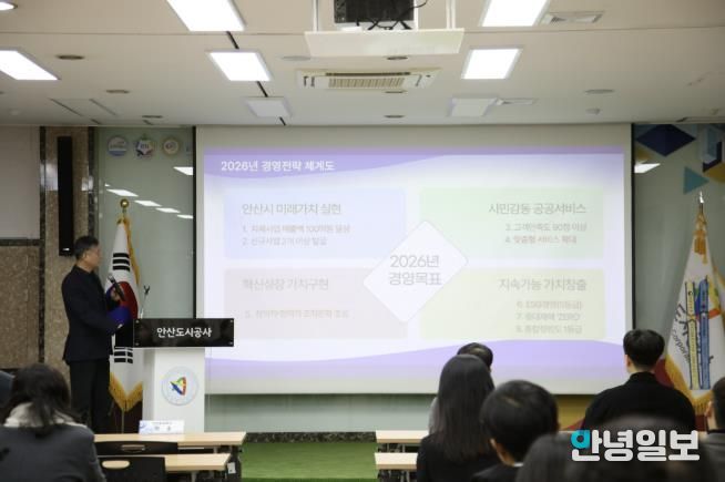 허숭 안산도시공사 사장은 “2026년은 자체사업 성장과 시민 체감 서비스 강화를 통해 공사의 경쟁력을 높이는 해가 될 것”이라며 “경영목표 달성을 위해 조직과 업무 방식을 지속적으로 혁신하고, 시민과 함께 성장하는 공기업이 되겠다”고 말했다.