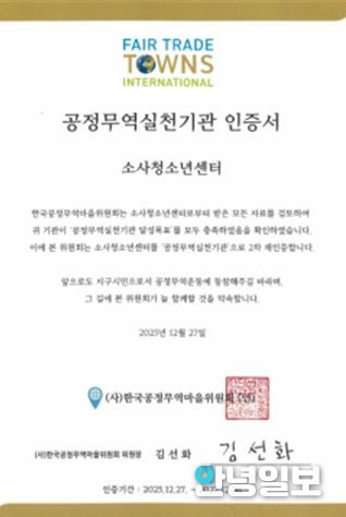 안녕일보 배윤 기자 | 부천여성청소년재단이 운영하는 소사청소년센터는 지난달 27일 사단법인 한국공정무역마을위원회로부터 ‘공정무역 실천기관’ 2차 재인증을 획득했다.