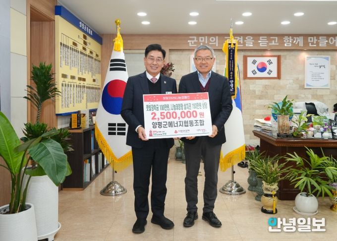 안녕일보 배윤 기자 | 양평군은 지난 5일, 양평군에너지협동조합이 햇빛장학금 100만 원과 150만 원 상당의 나눔태양광 설치권을 기탁했다고 밝혔다.