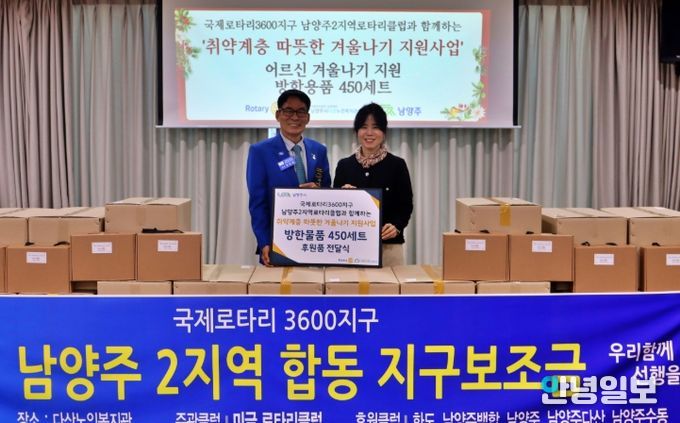 이번 전달식은 추운 겨울을 보내는 취약계층의 건강 보호와 생활 안정을 지원하기 위해 마련됐다. 국제로타리 3600지구 남양주 2지역 소속 로타리클럽 회원들이 뜻을 모아 방한용품을 후원하며 따뜻한 지역사회를 위한 나눔 활동에 참여했다.