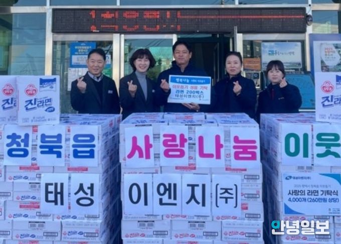 안녕일보 배윤 기자 | 평택시 청북읍에 있는 태성이엔지(주)는 지난 12월 30일, 청북읍 관내 어려운 이웃 지원을 위한 라면 200박스(260만 원 상당)를 청북읍 행정복지센터에 기부했다.
