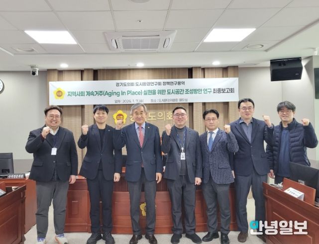 안녕일보 배윤 기자 | 경기도의회 도시환경연구회(회장 김시용, 도시환경위원장)는 7일 오후 경기도의회 도시환경위원회 회의실에서 ‘지역사회 계속거주(Aging In Place) 실현을 위한 도시공간 조성방안 연구’에 관한 정책연구용역 최종보고회를 개최했다.